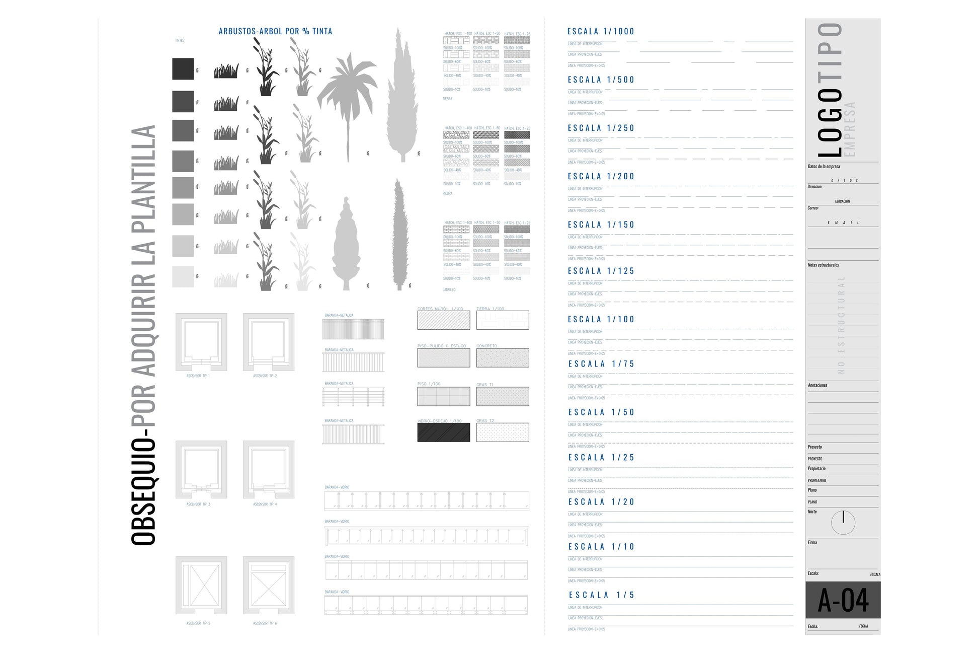 - Tipos de líneas por espesor y escala: Desde 1:5 hasta 1:500 para un detallado impecable.